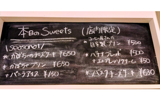 コーヒーに合うスイーツは店内にあるメニューボードから選びます。