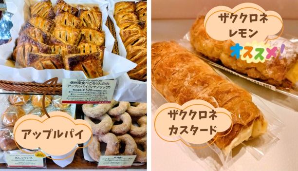 チェックしていただきたいのは、浅野屋さんのアップルパイも大人気です。収穫時期と品種が異なる5種類の新鮮なリンゴたちをそれぞれアップルパイにして、約1か月交代でお店に登場します。その名も「アップルパイリレー」というもので、自分好みのりんごを探す面白さがあります。